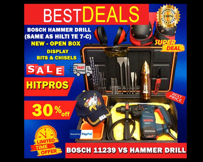 BOSCH HAMMER DRILL WAS USED ONLY AS A DISPLAY TOOL IN OUR STORE. WORKS LIKE NEW, MADE TO LAST