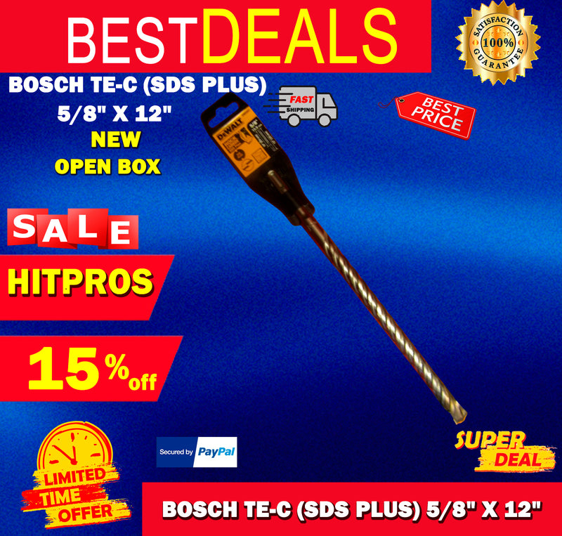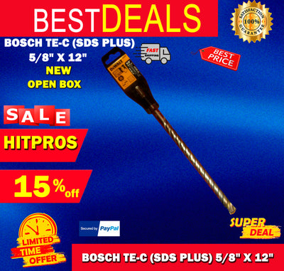 BOSCH TE-C (SDS PLUS) 5/8" x 12", BRAND NEW! L@@K, FAST SHIPPING YOU WILL RECEIVE AS SEEN IN PICTURES NO MORE NO LESS! CHECK OUT MY FEEDBACK AND BID WITH CONFIDENCE!! PLEASE CLICK TO SEE MY OTHER AUCTIONS AND ADDITIONAL ITEMS IN MY EBAY STORE. )))))))))BUYER IS RESPONSIBLE FOR READING AND UNDERSTANDING ALL POLICIES(((((((( YOU CAN BUY WITH CONFIDENCE, 100% SATISFACTION OR YOUR MONEY BACK. PLEASE FEEL FREE TO ASK ANY QUESTION OR CONCERNS. WE WILL GLADLY ANSWER. ((((((((((((( ? INTERNATIONAL BUYERS ? )))))))))))))))) >>>>>WE DO NOT SHIP TO SOUTH AMERICA (BRAZIL, PERU, VENEZUELA, ETC.)<<<<