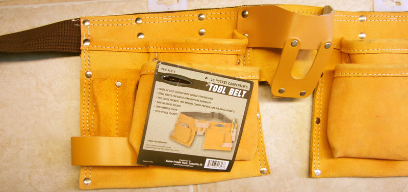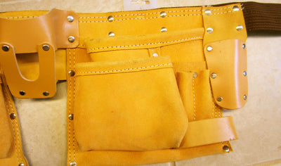 Features more than 10 pockets to keep all your tools handy! Made of split leather with double stitched ends and steel rivets for added strength and durability.