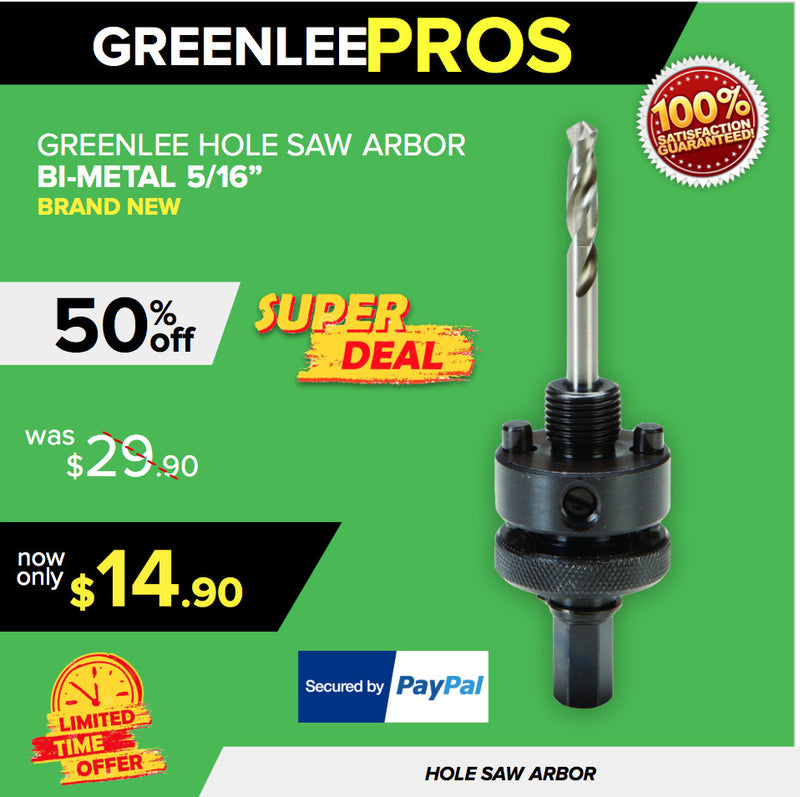 GREENLEE ARBOR BI-METAL 5/16'' HEX SHANK HOLE SAW ARBOR