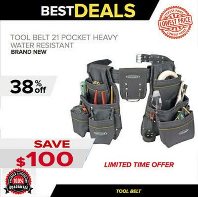 HEAVY DUTY TOOL BELT 21 POCKET, BLACK COLOR, WATER RESISTANT,
