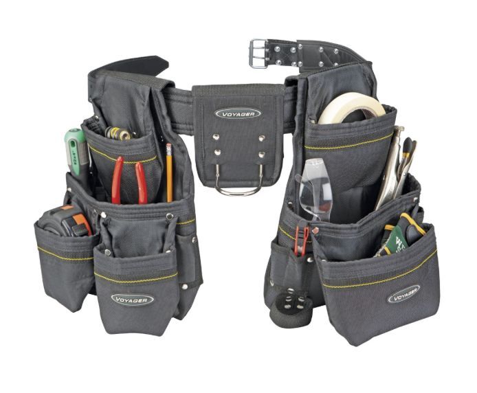 The tool belt also features 21 pockets, four tool loops and one steel hammer loop.