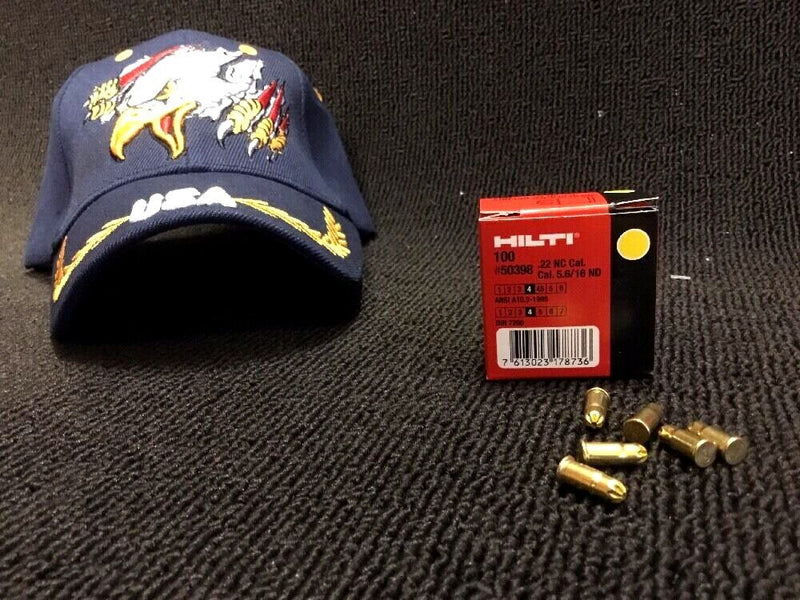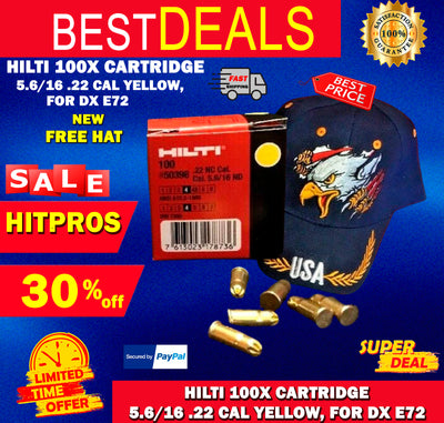 HILTI 100X CARTRIDGE 5.6/16 .22 CAL YELLOW, FOR DX E72, FREE HAT,