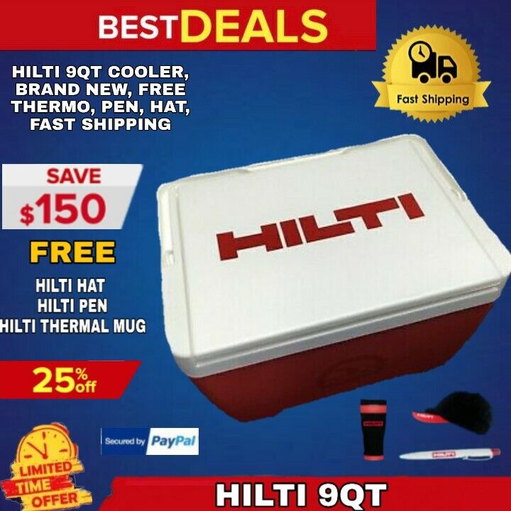 HILTI 9QT COOLER, BRAND NEW, FREE THERMO, PEN, HAT, FAST SHIPPING