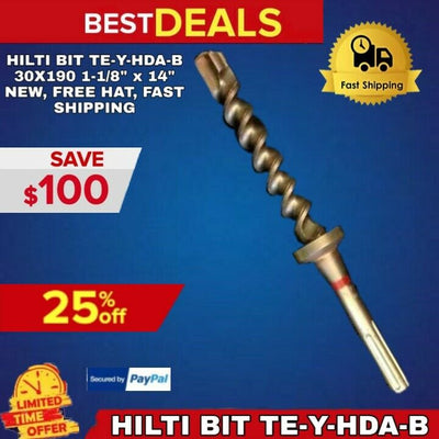 HILTI BIT TE-Y-HDA-B 30 X 190" NEW #332097 THIS BIT WAS USED ONLY AS A DISPLAY BIT IN OUR STORE. Size 1-1/8" x 14" |