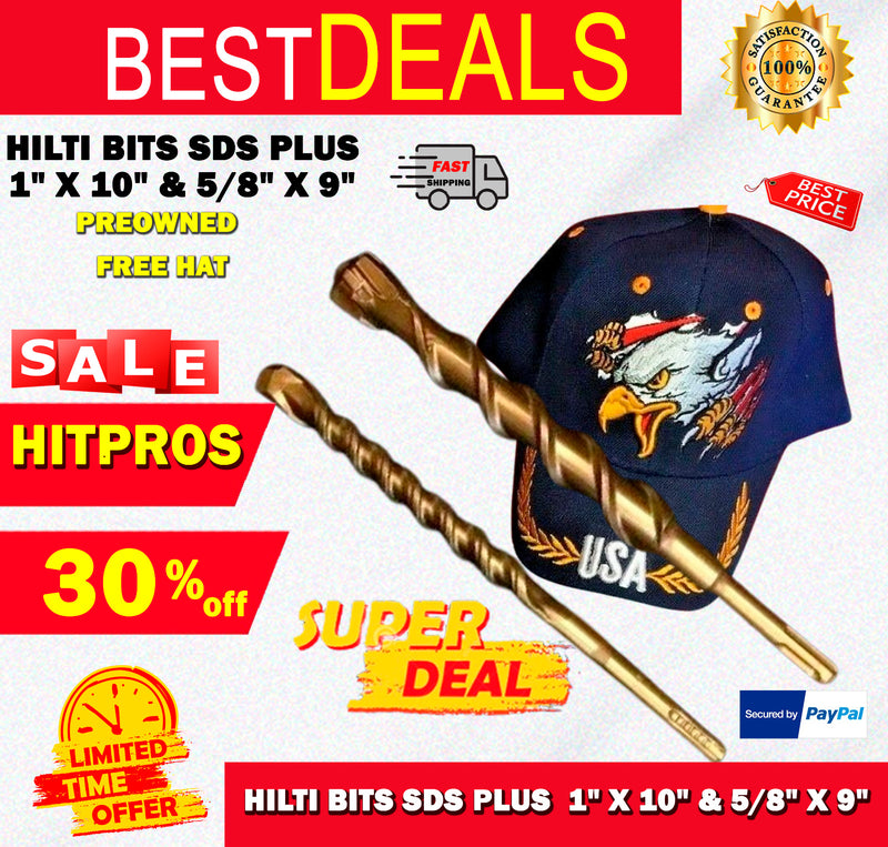 HILTI BITS SDS PLUS 1" X 10" AND 5/8" X 9" PREOWNED THESE BITS CAN BE USE ON ALL SMALL HAMMER DILL , HILTI ,BOSCH , MAKITA , MILWAUKEE HILTI TE 5 , TE 6 , TE 6 S , TE 6 C , TE 7 , TE 7-C , TE 14 , TE 15, TE 15 C , TE 17 , TE 24 , TE 25 , TE 40 , DRILL BIT SDS PLUS |