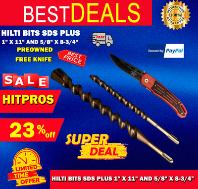 HILTI BITS SDS PLUS 1" X 11" AND 5/8" X 8-3/4" PREOWNED THESE BITS CAN BE USE ON ALL SMALL HAMMER DRILL , HILTI ,BOSCH , MAKITA , MILWAUKEE |