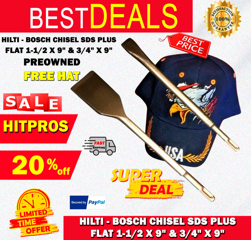 HILTI - BOSCH CHISEL SDS PLUS FLAT 1-1/2 X 9" AND 3/4" X 9"