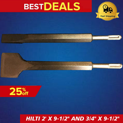 HILTI - BOSH CHISEL SDS PLUS FLAT 2' X 9-1/2" AND 3/4" X 9-1/2"