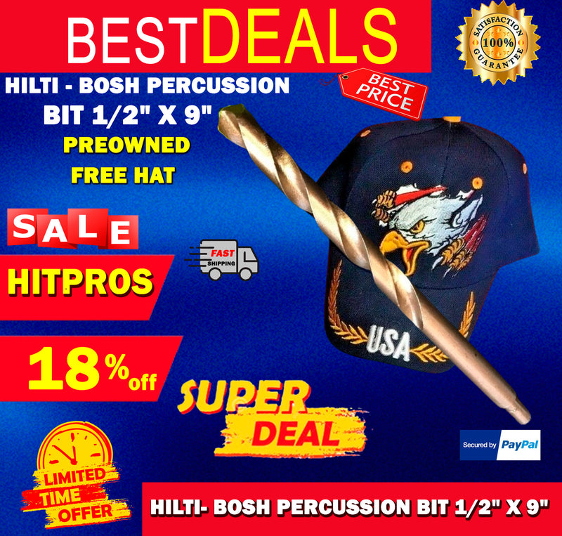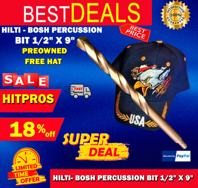 HILTI- BOSH PERCUSSION BIT 1/2" X 9", PREOWNED, FREE HAT