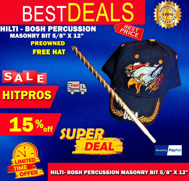 HILTI- BOSH PERCUSSION MASONRY BIT 5/8" X 12", PREOWNED, FREE HAT