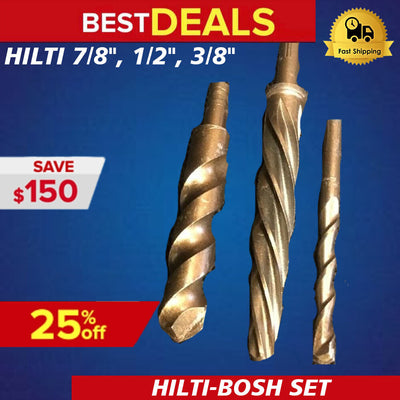 HILTI-BOSH SET OF PERCUSSION BIT 7/8", 1/2", 3/8",PREOWNED, FREE HAT