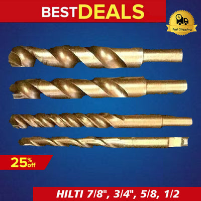 HILTI-BOSH SET PERCUSSION BIT 7/8", 3/4", 5/8, 1/2,PREOWNED, FREE HAT