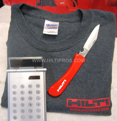 HILTI - CALCULATOR / PHOTO FRAME, HILTI KNIFE, T-SHIRT