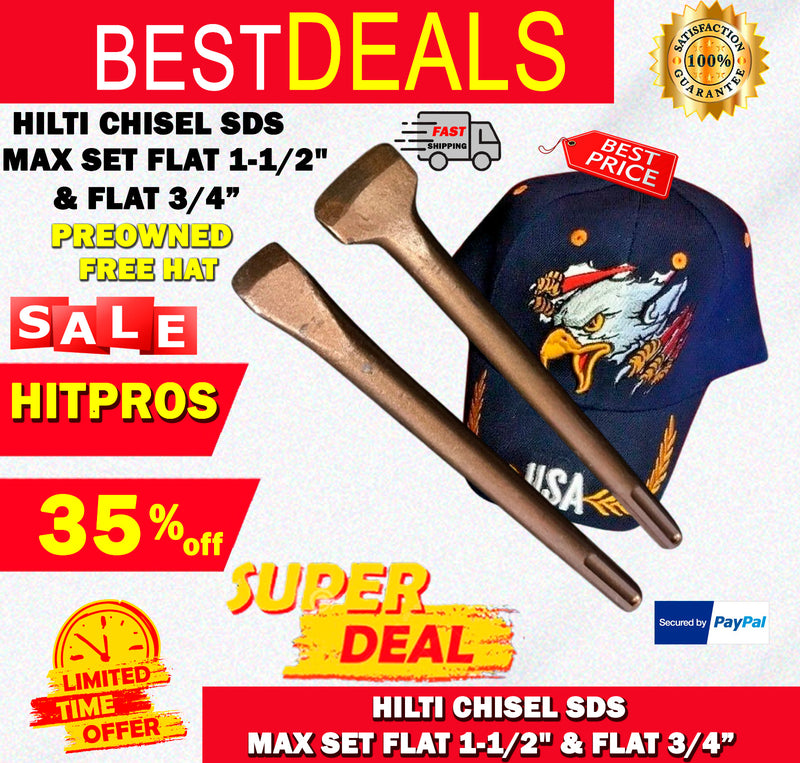 HILTI CHISEL SDS MAX SET FLAT 1-1/2" AND FLAT 3/4", PREOWNED
