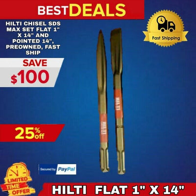 HILTI CHISEL SDS MAX SET FLAT 1" X 14" AND POINTED 14", PREOWNED