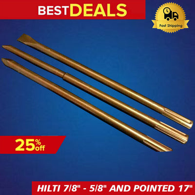 HILTI CHISEL SDS MAX SET W/FLAT 7/8" - 5/8" AND POINTED 17", PREOWNED