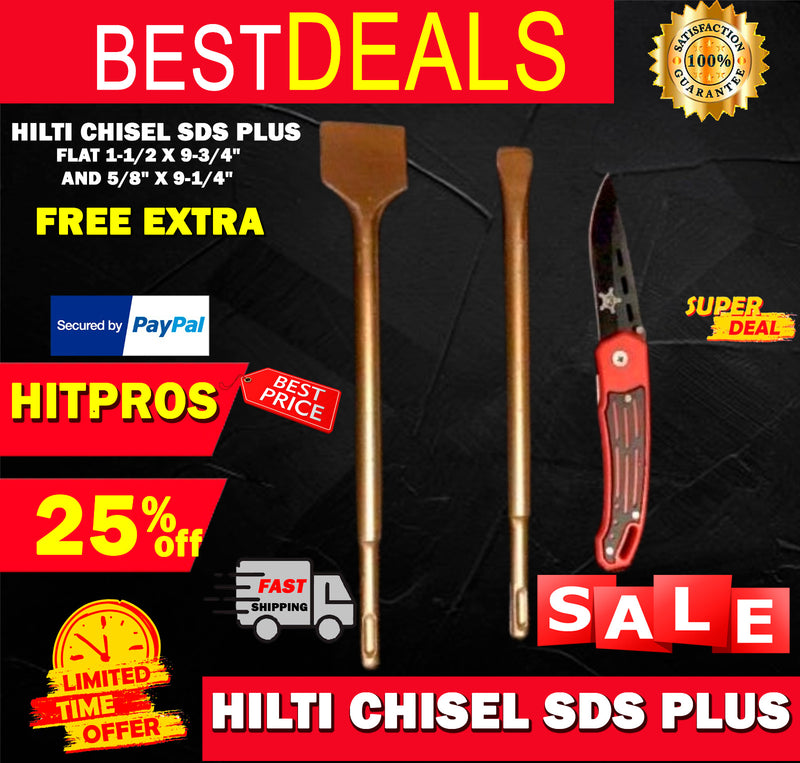 HILTI CHISEL SDS PLUS FLAT 1-1/2 X 9-3/4" AND 5/8" X 9-1/4",