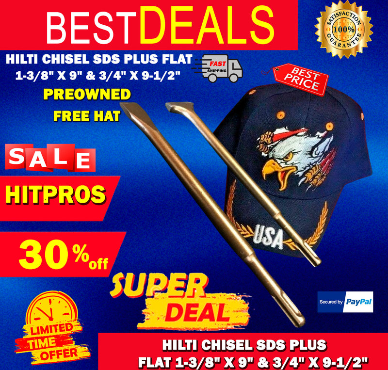 HILTI CHISEL SDS PLUS FLAT 1-3/8 X 9" AND 3/4" X 9-1/2", HAT