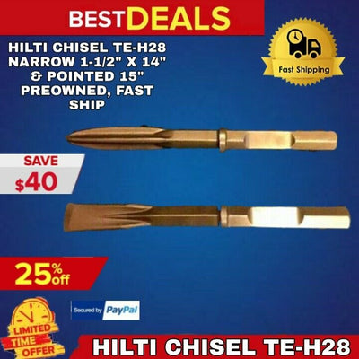 HILTI CHISEL TE-H28 NARROW 1-1/2" X 14" & POINTED 15" PREOWNED,