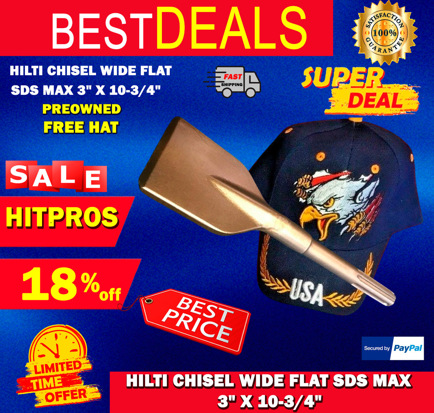 HILTI CHISEL WIDE FLAT SDS MAX 3" X 10-3/4" PREOWNED