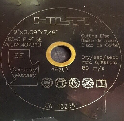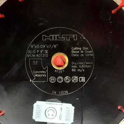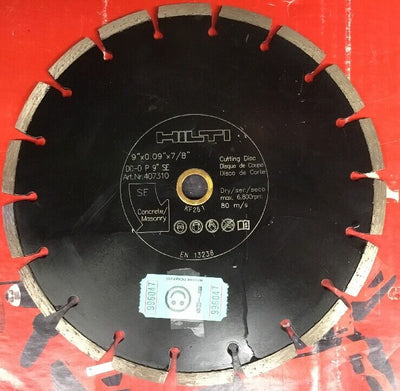 HILTI DIAMOND CUTTING DISC 9" DIAMETER - ARBOR - 7/8" - 5/8" - 407310