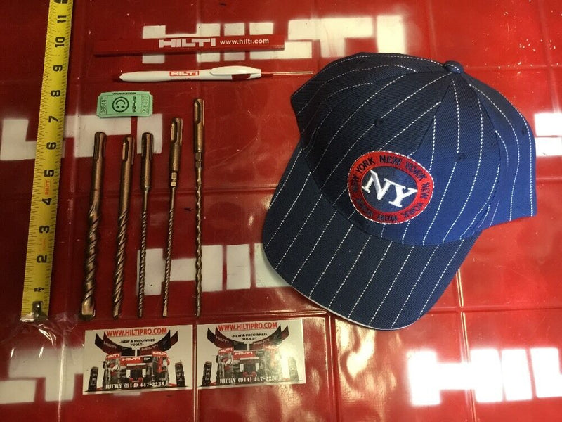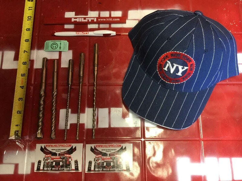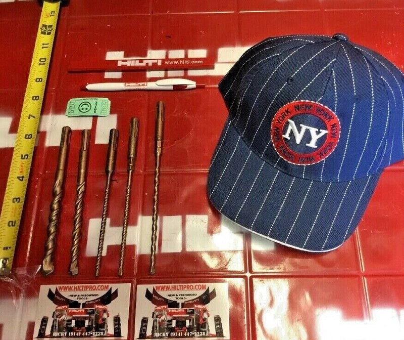 THIS HILTI SET OF 5 BITS IS PREOWNED, BUT IN MINT CONDITION! I HAVE NEVER USED THESE BITS. IT HAS SOME LIGHT WEAR FROM BEING ON THE SHELF. BUT OTHERWISE THEY ARE PERFECT AND READY FOR USE. THESE BITS ARE HEAVY DUTY AND WILL LAST YOU A LONG TIME JUST LIKE ANY OTHER HILTI. WE ARE INCLUDING A FREE BRAND NEW HILTI PEN, PENCIL AND HAT!
