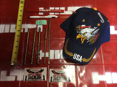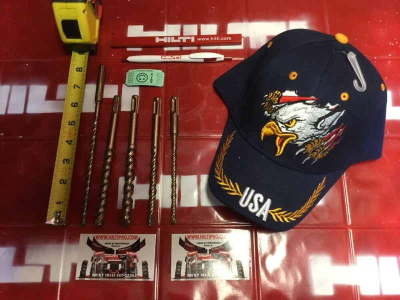 THIS HILTI SET OF 5 BITS IS PREOWNED, BUT IN MINT CONDITION! I HAVE NEVER USED THESE BITS. IT HAS SOME LIGHT WEAR FROM BEING ON THE SHELF. BUT OTHERWISE THEY ARE PERFECT AND READY FOR USE. THESE BITS ARE HEAVY DUTY AND WILL LAST YOU A LONG TIME JUST LIKE ANY OTHER HILTI. WE ARE INCLUDING A FREE BRAND NEW HILTI PEN, PENCIL AND HAT!