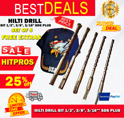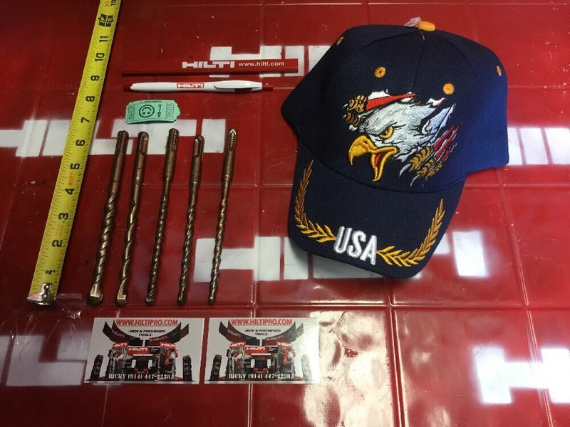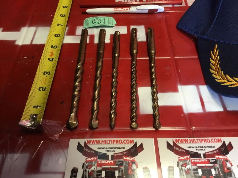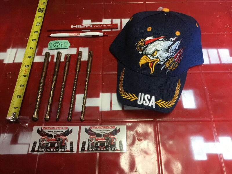 THIS HILTI SET OF 5 BITS IS PREOWNED, BUT IN MINT CONDITION! I HAVE NEVER USED THESE BITS. IT HAS SOME LIGHT WEAR FROM BEING ON THE SHELF. BUT OTHERWISE THEY ARE PERFECT AND READY FOR USE. THESE BITS ARE HEAVY DUTY AND WILL LAST YOU A LONG TIME JUST LIKE ANY OTHER HILTI. WE ARE INCLUDING A FREE BRAND NEW HAT, PEN AND PENCIL!