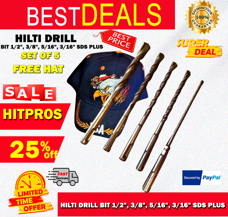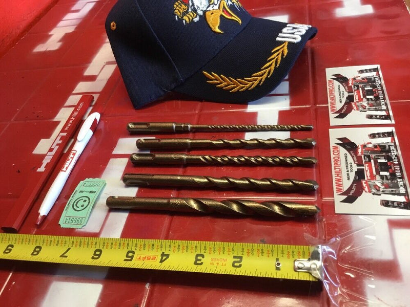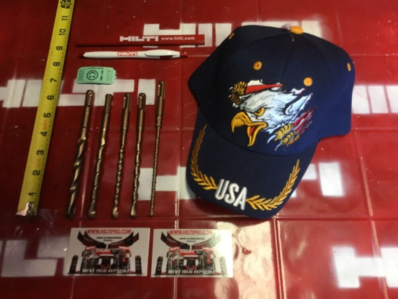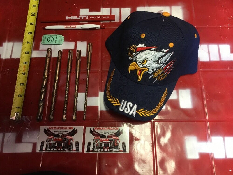 THIS HILTI SET OF 5 BITS IS PREOWNED, BUT IN MINT CONDITION! I HAVE NEVER USED THESE BITS. IT HAS SOME LIGHT WEAR FROM BEING ON THE SHELF. BUT OTHERWISE THEY ARE PERFECT AND READY FOR USE. THESE BITS ARE HEAVY DUTY AND WILL LAST YOU A LONG TIME JUST LIKE ANY OTHER HILTI. WE ARE INCLUDING A FREE BRAND NEW HAT, PEN AND PENCIL!