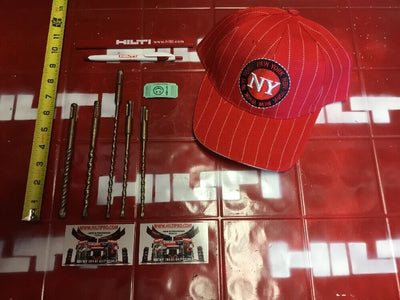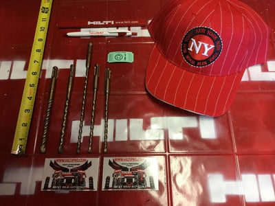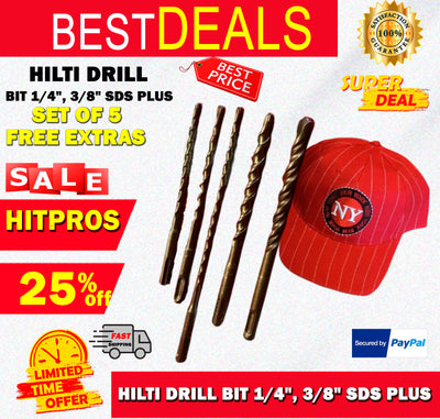 THIS HILTI SET OF 5 BITS IS PREOWNED, BUT IN MINT CONDITION! I HAVE NEVER USED THESE BITS. IT HAS SOME LIGHT WEAR FROM BEING ON THE SHELF. BUT OTHERWISE THEY ARE PERFECT AND READY FOR USE. THESE BITS ARE HEAVY DUTY AND WILL LAST YOU A LONG TIME JUST LIKE ANY OTHER HILTI. WE ARE INCLUDING A FREE BRAND NEW HILTI PEN, PENCIL AND HAT!