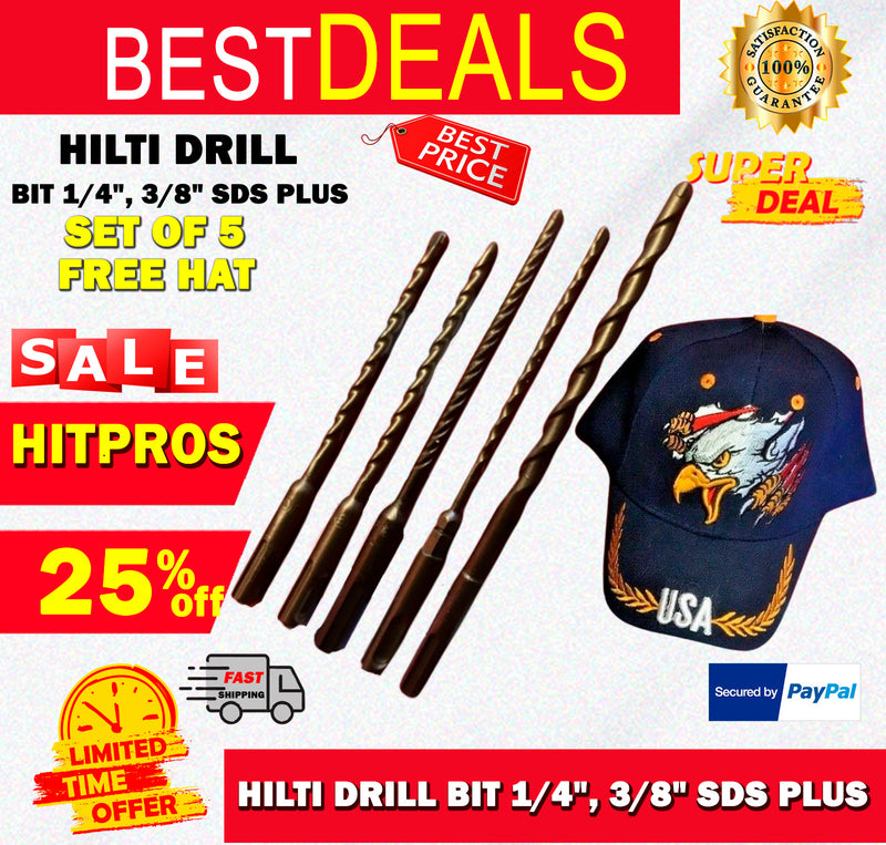 HILTI DRILL BIT 1/4", 3/8" SDS PLUS, SET OF 5,