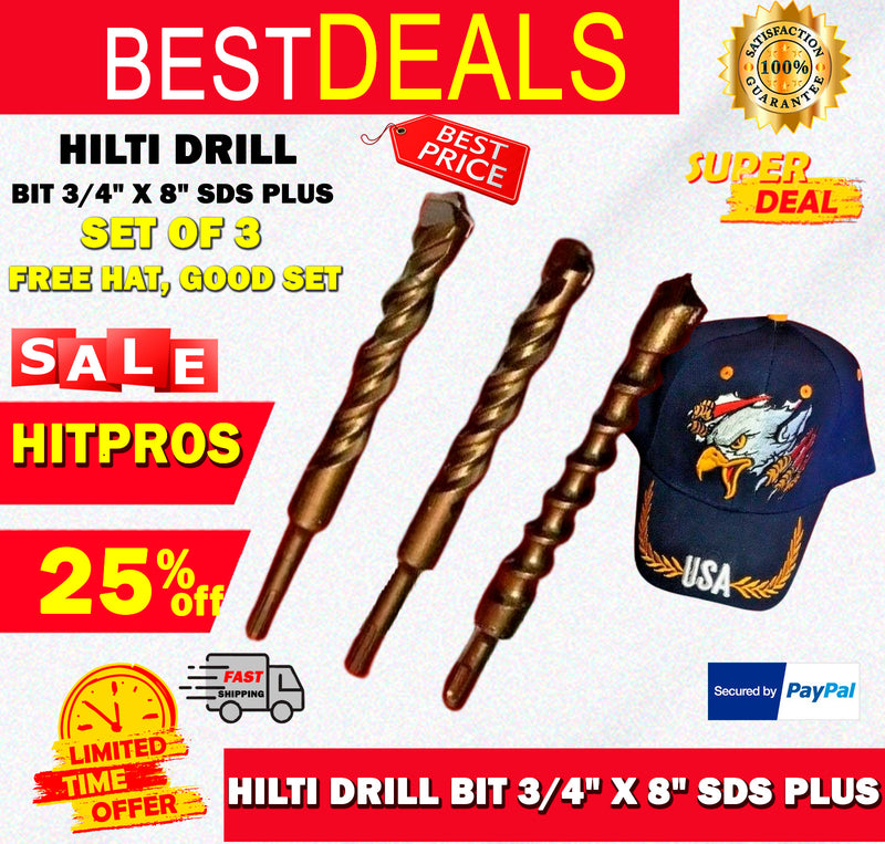 HILTI DRILL BIT 3/4" X 8" SDS PLUS SET OF 3,,