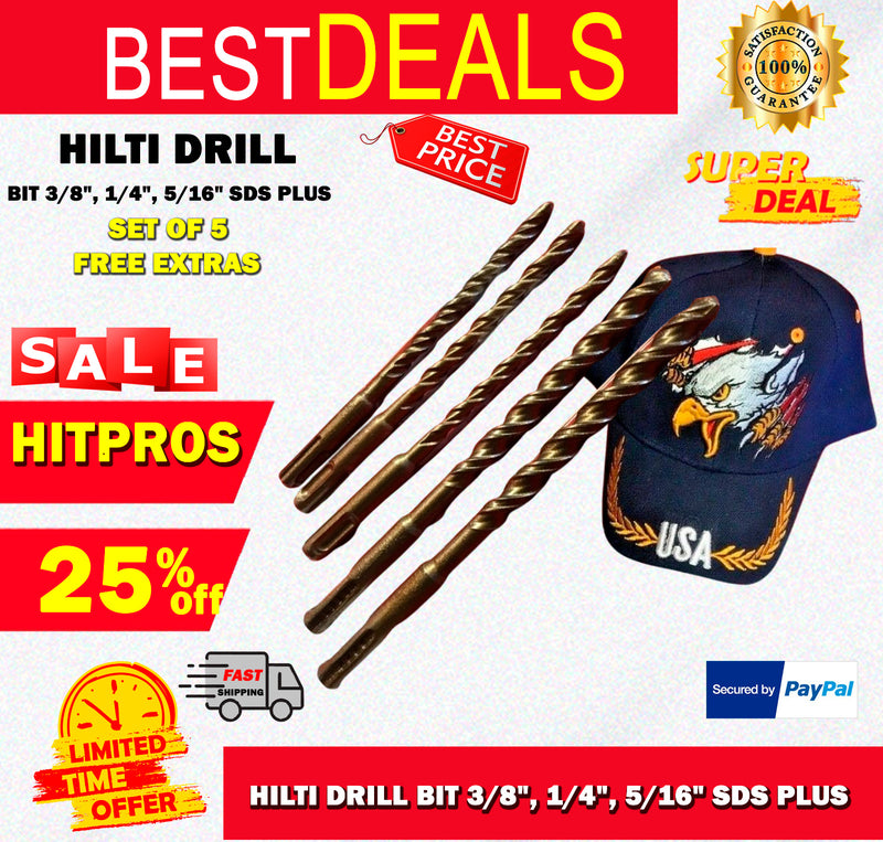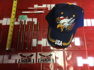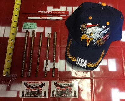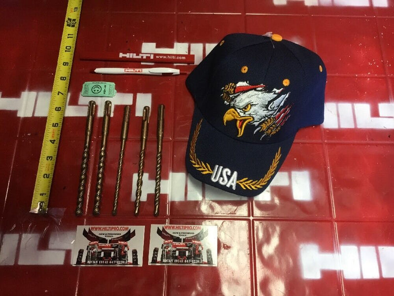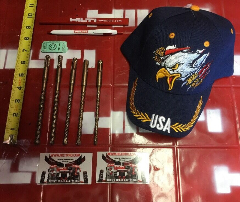 THIS HILTI SET OF 5 BITS IS PREOWNED, BUT IN MINT CONDITION! I HAVE NEVER USED THESE BITS. IT HAS SOME LIGHT WEAR FROM BEING ON THE SHELF. BUT OTHERWISE THEY ARE PERFECT AND READY FOR USE. THESE BITS ARE HEAVY DUTY AND WILL LAST YOU A LONG TIME JUST LIKE ANY OTHER HILTI. WE ARE INCLUDING A FREE BRAND NEW HAT, PEN AND PENCIL!