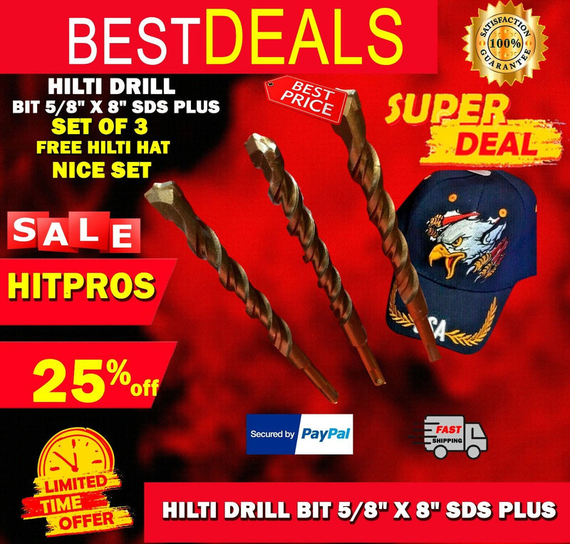 HILTI DRILL BIT 5/8" X 8" SDS PLUS SET OF 3