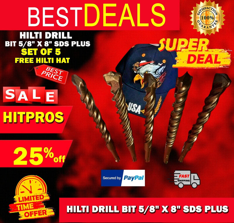 HILTI DRILL BIT 5/8" X 8" SDS PLUS SET OF 5,