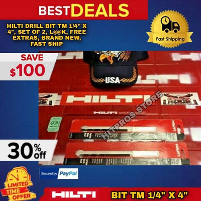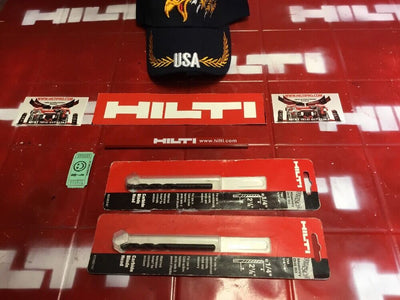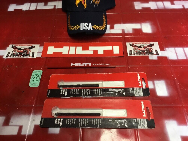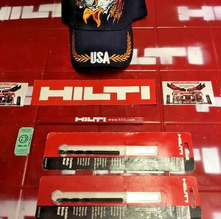 THIS HILTI SET OF 2 BITS IS BRAND NEW, WE ARE INCLUDING FREE BRAND NEW HAT AND HILTI PENCIL!