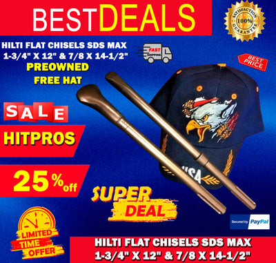 HILTI FLAT CHISEL SDS MAX 1-3/4" X 12" AND 7/8 X 14-1/2", PREOWNED