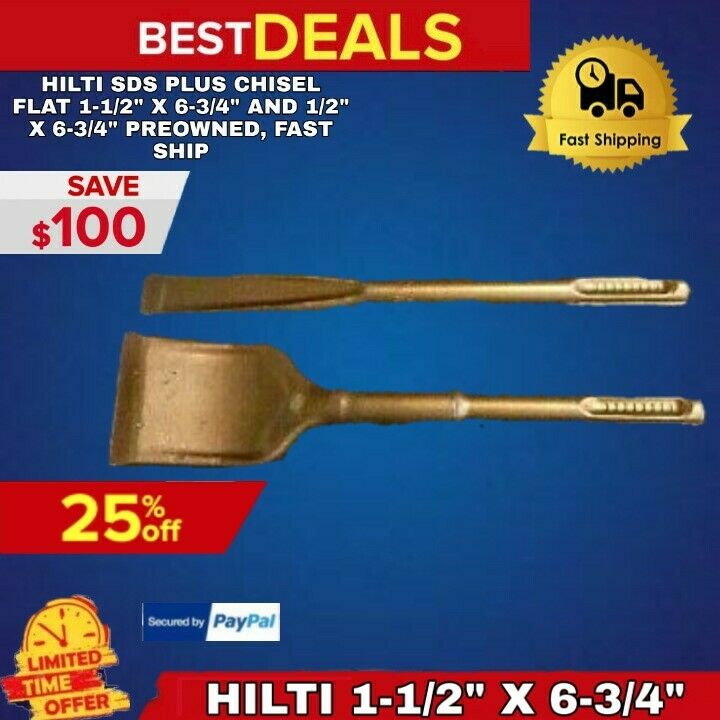 HILTI SDS PLUS CHISEL FLAT 1-1/2" X 6-3/4" AND 1/2" X 6-3/4" PREOWNED