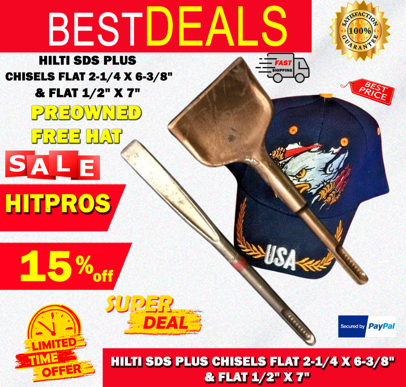 HILTI SDS PLUS CHISEL FLAT 2-1/4 X 6-3/8" AND FLAT 1/2" X 7" PREOWNED