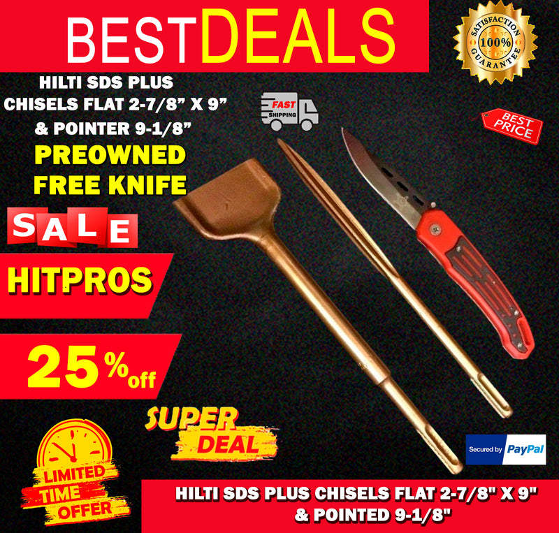 HILTI SDS PLUS CHISEL FLAT 2-7/8" X 9" & POINTED 9-1/8" PREOWNED
