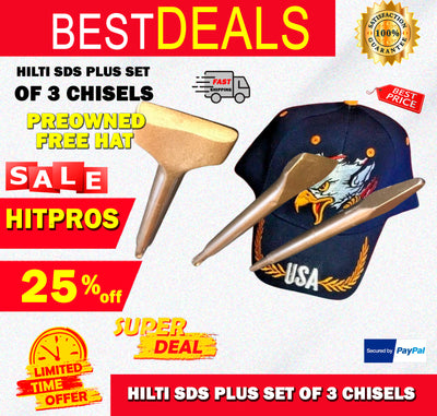 HILTI SDS PLUS SET OF 3 CHISELS PREOWNED, FREE HAT