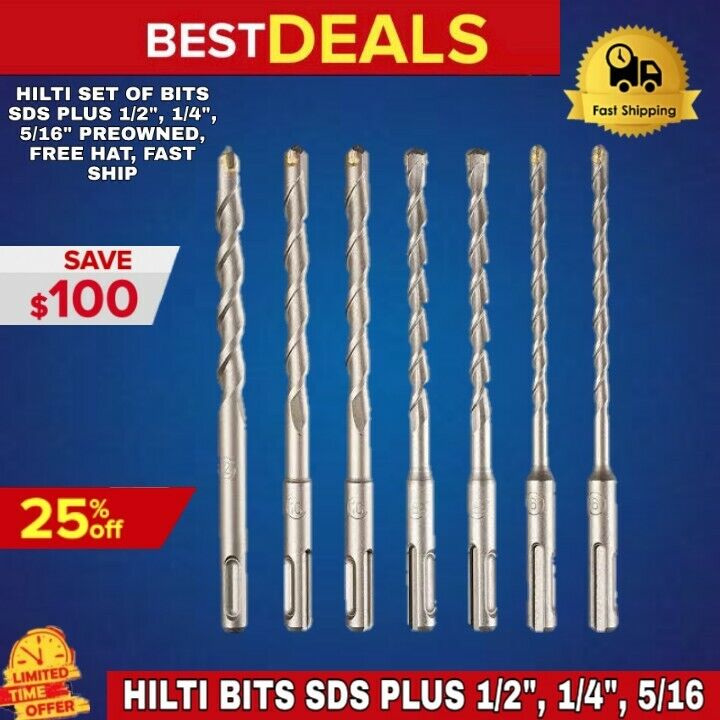 HILTI SET OF BITS SDS PLUS 1/2", 1/4", 5/16" PREOWNED, FREE HAT