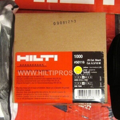 HILTI SHOTS .25 CAL ,6.3/10 M YELLOW BULK , BRAND NEW