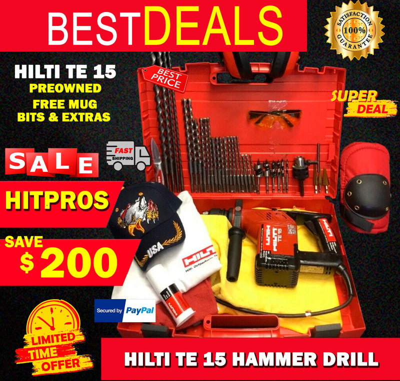 HILTI TE 15 HAMMER DRILL PREOWNED, FREE MUG, BITS, EXTRAS