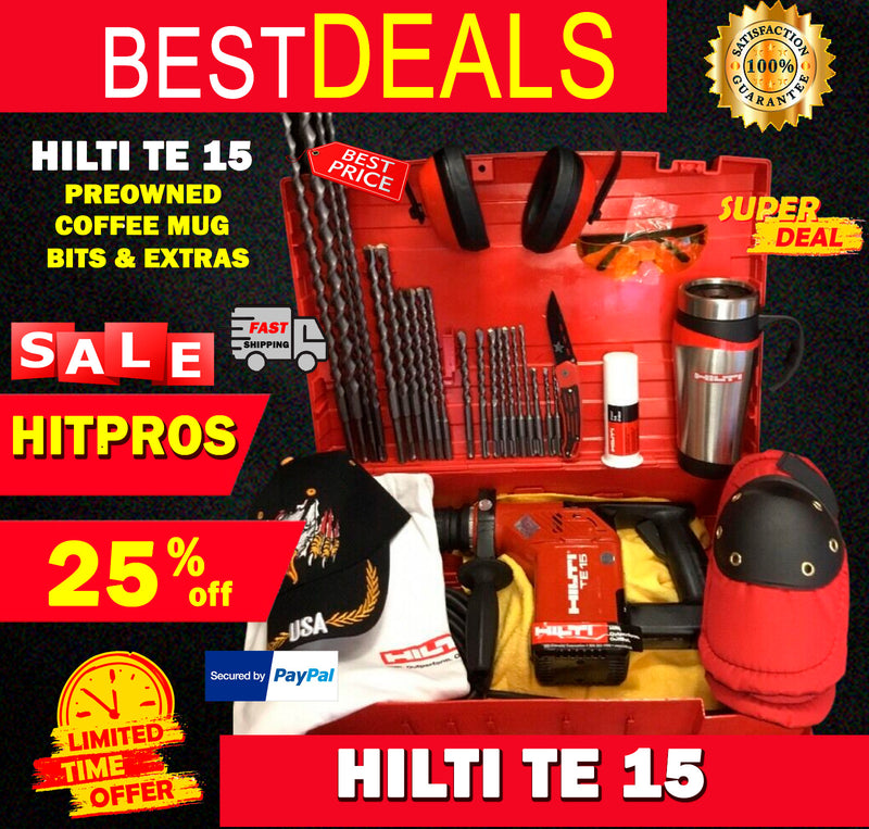 HILTI TE 15, PREOWNED, FREE COFFEE MUG, BITS, AND MORE