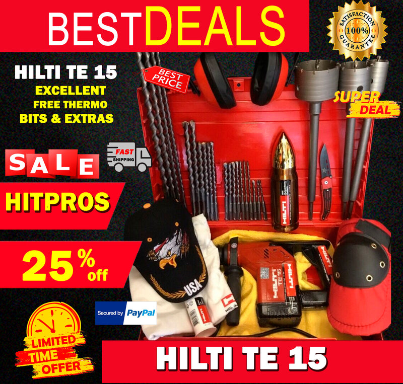 HILTI TE 15, PREOWNED, FREE THERMO, BITS, LOT OF EXTRAS