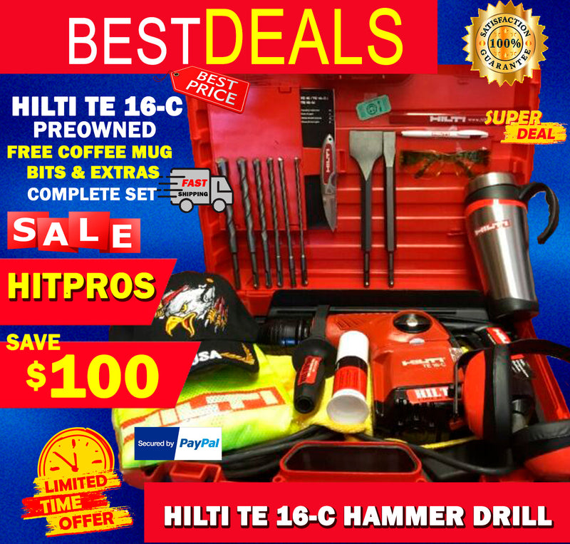 THIS HILTI IS PREOWNED. IN EXCELLENT CONDITION. THIS VERY STRONG AND DURABLE, WE ARE INCLUDING A HEAVY DUTY HILTI CARRYING CASE. AS YOU CAN SEE IN THW PICTURES THIS HILTI TE 16-C IS IM GREAT CONDITION!