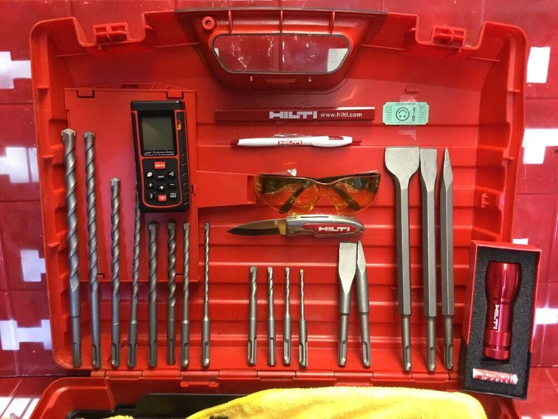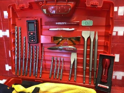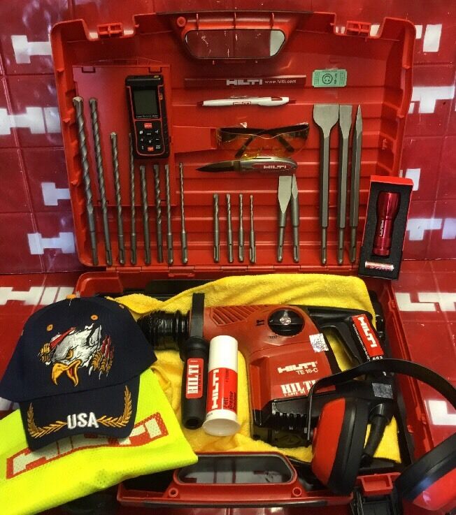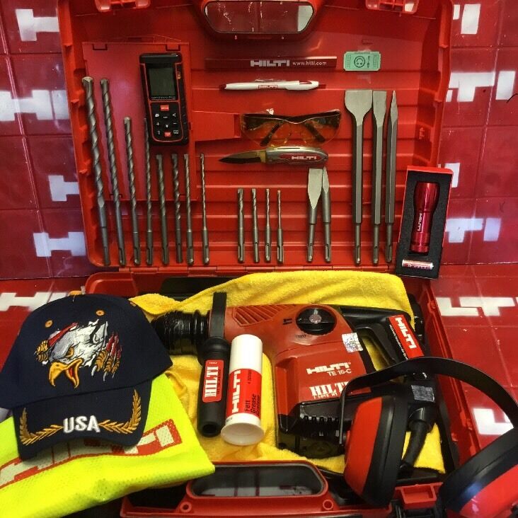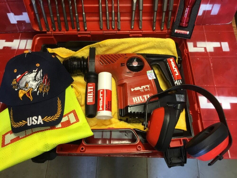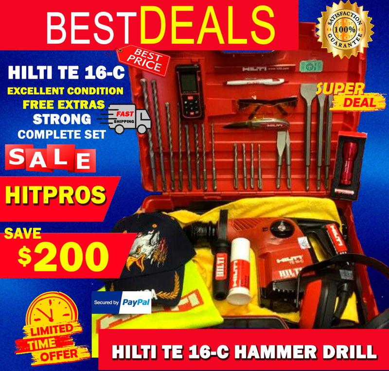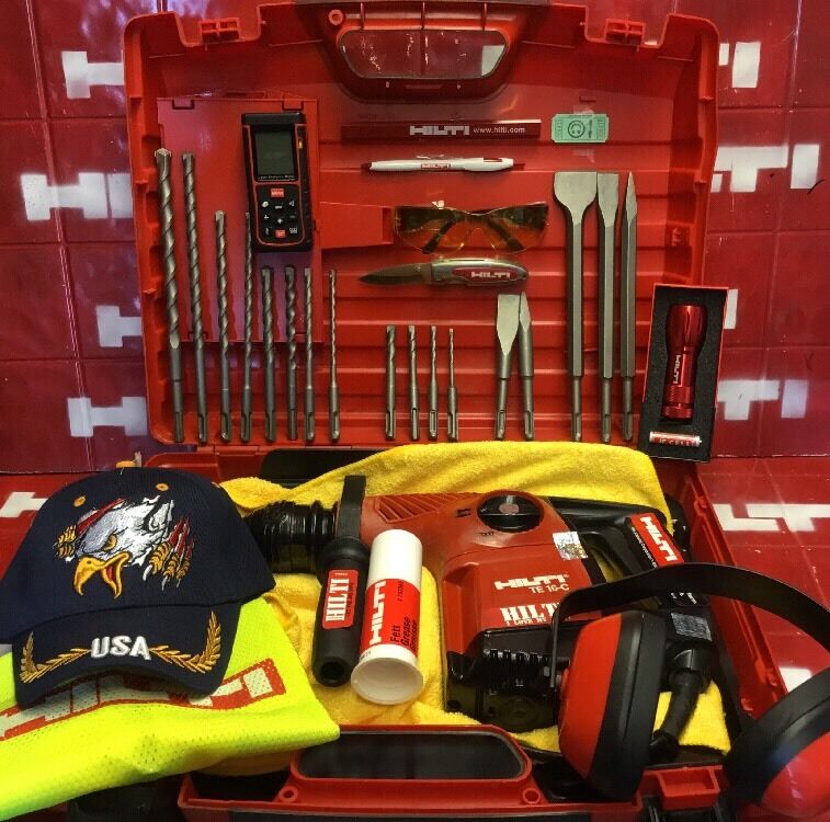 HILTI TE 16-C HAMMER DRILL THIS HILTI IS IN EXCELLENT CONDITION. AS YOU CAN SEE IN THE PICTURES THIS HILTI TE 16-C LOOKS NEW, AND WORKS LIKE NEW. THIS SET INCLUDES FREE SET PF BITS AND CHISELS SO YOU CAN GET THE JOB STARTED AS SOON AS YOU RECEIVE YOUR HILTI. YOU WILL RECEIVE THE FOLLOWING FOR FREE: 1 BIT 3/16 X 4-1/4" 1 BIT 1/4 X 4-1/4" 1 BIT 5/16 X 4-1/4" 1 BIT 3/8 X 4-1/4" 1 BIT 1/4 X 6-1/4" 1 BIT 5/16 X 6-1/4" 1 BIT 3/8 X 6-1/4" 1 BIT 1/2 X 6-1/4" 1 BIT 5/16 X 8-1/4" 1 BIT 3/8 X 8-1/4" 1 BIT 1/2 X 10-1/4" 1 BIT 9/16 X 10-1/4" 1 SHORT CHISEL FLAT 5-1/2" 1 SHORT CHISEL POINTED 5-1/2" 1 CHISEL FLAT 3/4" X 10" 1 CHISEL WIDE 1-1/2" X 10" 1 CHISEL POINTED 10" SAFETY VEST LASER DISTANCE METER HILTI GREASE HILTI KNIFE HILTI PEN AND PENCIL SAFETY GLASSES HAT HILTI LED FLASHLIGHT SAFETY EAR MUFFS >>>>WHAT YOU SEE IS WHAT YOU GET<<<< ))))))))))BUYER IS RESPONSIBLE FOR READING AND UNDERSTANDING ALL POLICIES(((((((( YOU CAN BUY WITH CONFIDENCE, 100% SATISFACTION OR YOUR MONEY BACK. SHIPPING:WE ONLY SHIP TO CONFIRMED ADDRESSES, SHIPMENTS TO P.O BOXES WILL BE CHARGED AN EXTRA $10. SHIPPING PRICE LISTED IS FOR THE THE 48 US CONTIGUOUS STATES ONLY. PLEASE CONTACT US PRIOR TO PURCHASE IF YOU LIVE OUTSIDE THE CONTINENTAL US (SHIPPING PRICES MAY VARY). SHIPMENTS ARE MADE QUICKLY AFTER ITEM IS PAID. INTERNATIONAL SHIPMENT THE BUYER WILL BE RESPONSIBLE TO PAY ALL THE DUTIES IN THEIR COUNTRIES. RETURNS: IF YOU ARE NOT COMPLETELY SATISFIED WITHIN 14 DAYS AFTER YOU RECEIVE THE ITEM, PLEASE CONTACT US AND RETURN THE ITEM FOR A FULL REFUND, MINUS THE SHIPPING COST. ( NO QUESTIONS ASKED) NO REFUND UNTIL ITEM IS RETURNED. PLEASE, DO NOT ASSUME ANYTHING. IF IT IS NOT SHOWN IN PICTURES OR WRITTEN IN THE DESCRIPTION, CHANCES ARE IT IS NOT INCLUDED! AGAIN, IF YOU UNSURE OF ANYTHING, PLEASE FEEL FREE TO CONTACT US AT (914) 447 - 2238 IF YOU HAVE PURCHASED AND HAVE ANY ISSUES, PLEASE DO NOT FILE A DISPUTE OR LEAVE A NEGATIVE FEEDBACK BEFORE CONTACTING US FIRST. I GUARANTEE A RESPONSE TO YOUR EMAIL OR PHONE CALL. WE WILL RESOLVE ANY ISSUES YOU MAY HAVE. A $25.00 RESTOCKING FEE WILL BE CHARGED FOR ANY BUYERS THAT BACK OUT OF A PURCHASE WITHOUT A GOOD REASON. ((((((((((((( INTERNATIONAL BUYERS )))))))))))))))) PRIOR TO PURCHASE, PLEASE EMAIL US TO CHECK HOW MUCH THE SHIPPING COST ARE FIRST , WE WILL GET THE BEST PRICE OF SHIPPING TO ANY COUNTRY, THANKS. ((((((((((((( ? INTERNATIONAL BUYERS ? )))))))))))))))) >>>>>WE DO NOT SHIP TO SOUTH AMERICA (BRAZIL, PERU, VENEZUELA,