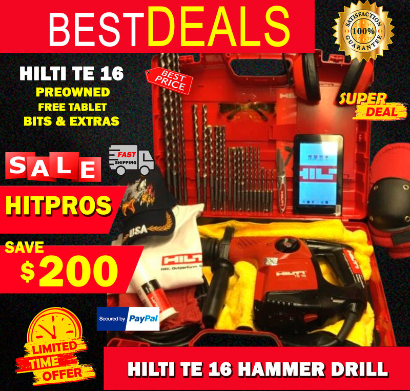 HILTI TE 16 HAMMER DRILL, PREOWNED, FREE TABLET, BITS, EXTRAS, QUICK SHIP